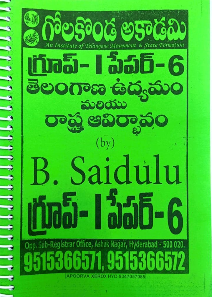 GROUP-1 MAINS TGPSC TELENGANA MOVEMENT PAPER-6 CLASSNOTES BY B.SAIDULU XEROX TELUGU MEDIUM.