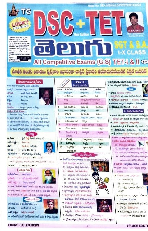 LUCKY PUBLICATIONS DSC+TET TELUGU SGT&SA 1-10TH TET 1&2 AUTHOR A.RAJENDAR CHART TM