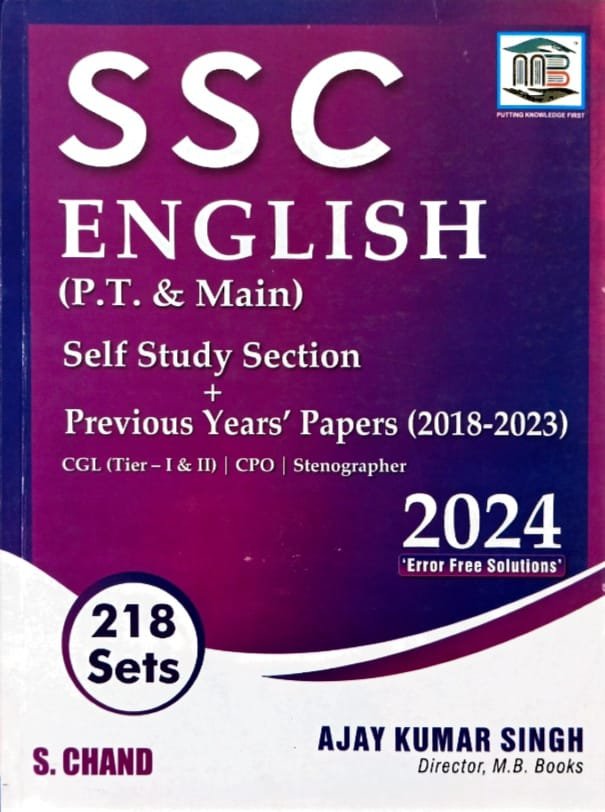 S CHAND PUBLISHING SSC ENGLISH P.T,MAIN SELF STUDY SECTION+PREVIOUS YEARS+PAPERS 2024 ERROR FREE SOLUTIONS AUTHOR AJAYKUMAR SINGH 218 SETS ENGLISH