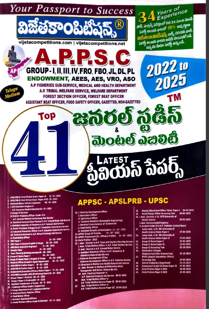 VIJETA COMPITITION APPSC GENERALSTUDIES & MENTALABILITY TOP-41 LATEST PREVIOUSPAPERS 2022-2025 TELUGU MEDIUM