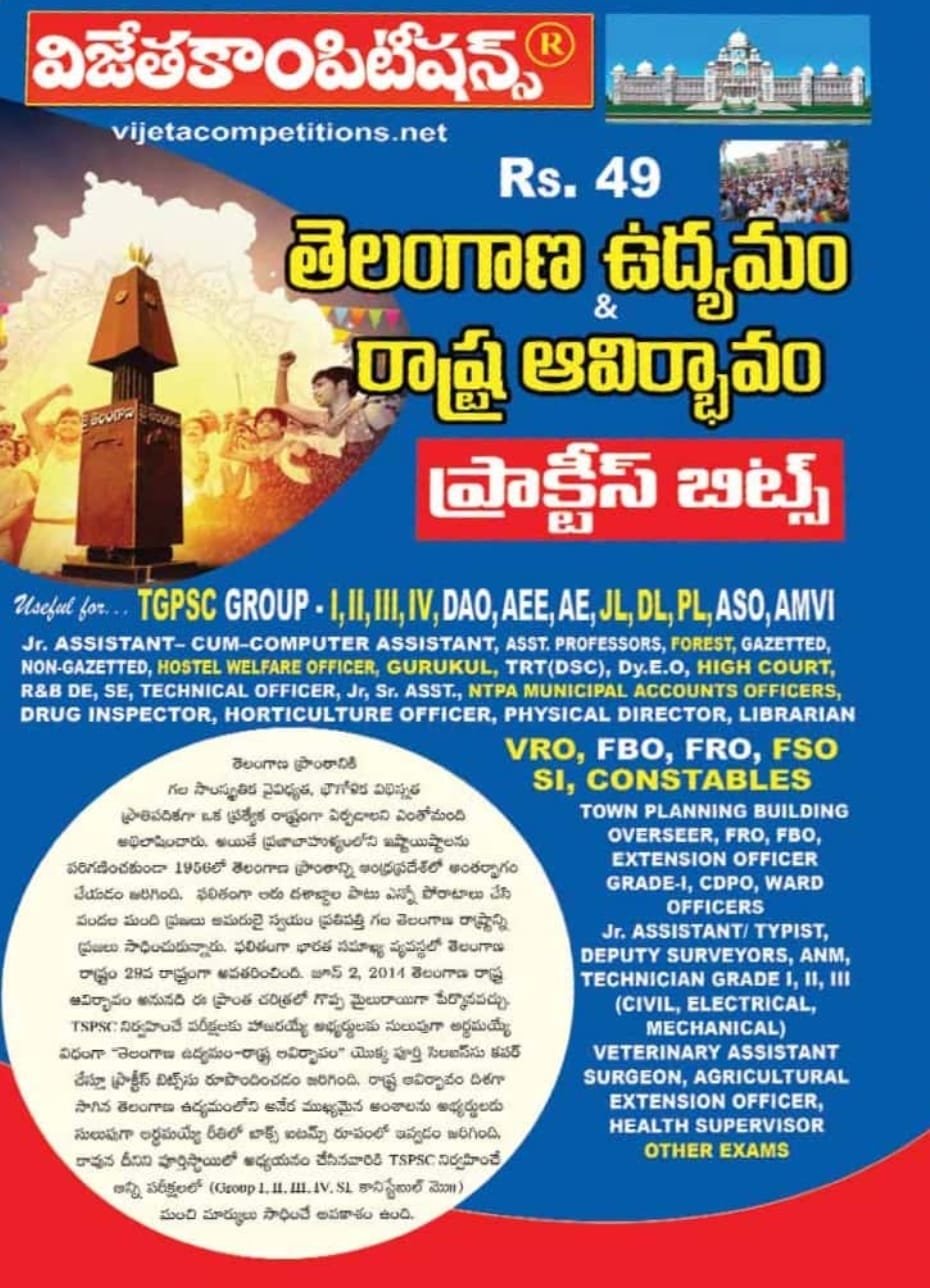 VIJETA COMPITITIONS TELANGANA MOVEMENT STATEFORMATION PRACTICE BITS CHART TELUGU MEDIUM